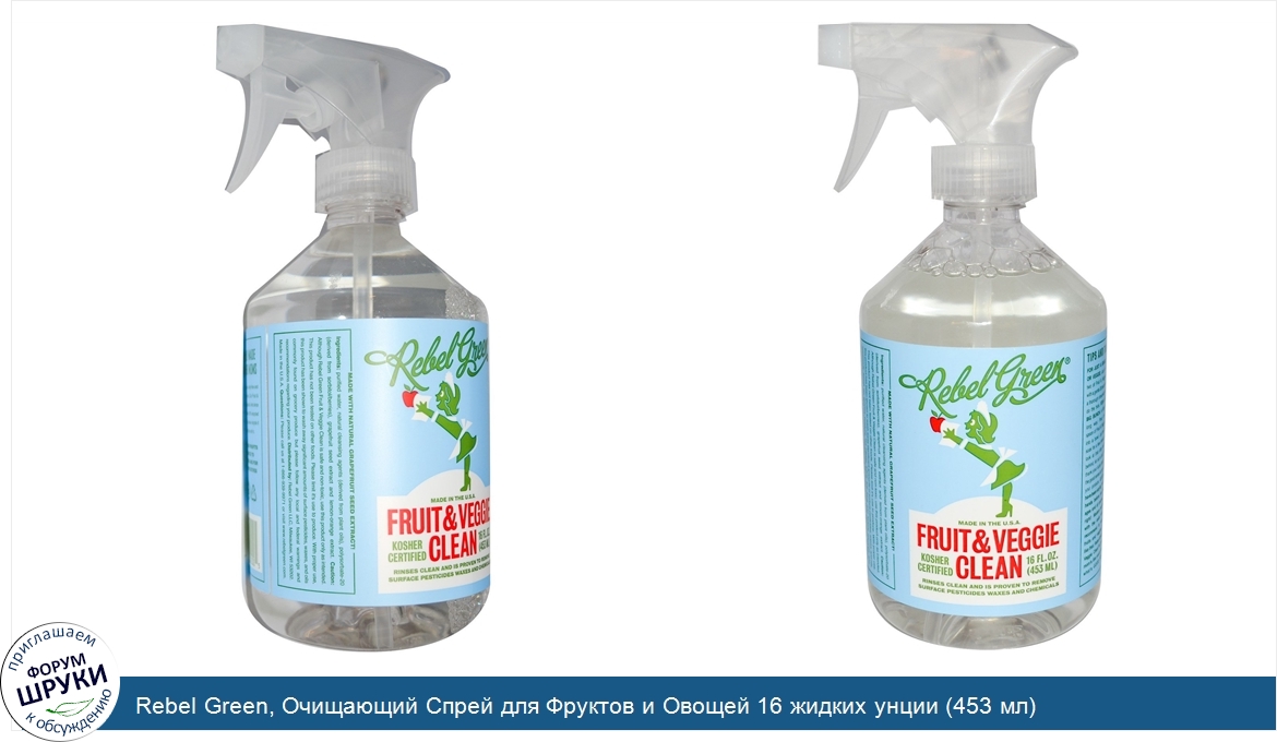 Друзья, если у вас есть отзыв/дополнение/комментарий/вопрос относительно Rebel Green, Очищающий Спрей для Фруктов и Овощей 16 жидких унции (453 мл) - напишите его ответом в эту тему (это будет полезно всему сообществу в целом и вам в отдельности).