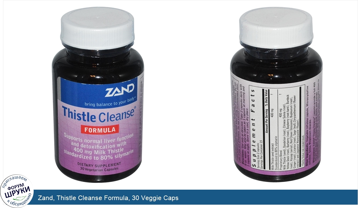 Bring Balance to Your Body. Supports Normal Liver Function and Detoxification with 400 mg Milk Thistle Standardized to 80% Silymarin. Dietary Supplement. Discussion: Zand Thistle Cleanse capsules provide a full 4...