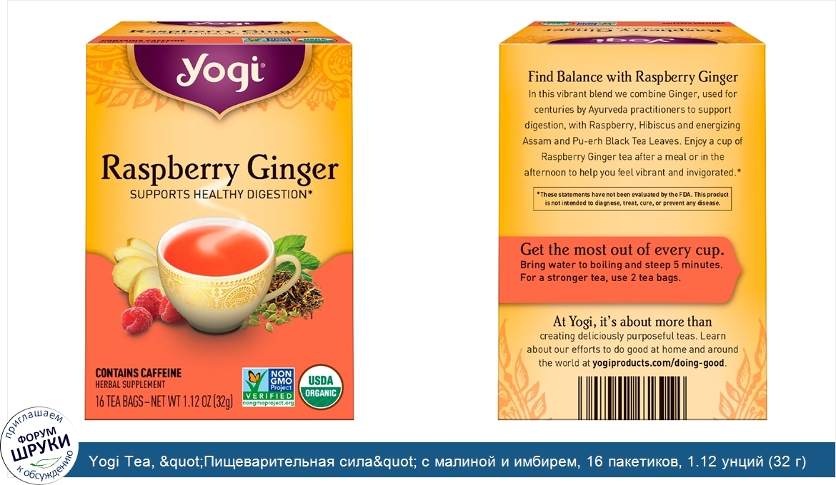 Друзья, если у вас есть отзыв/дополнение/комментарий/вопрос относительно Yogi Tea, "Пищеварительная сила" с малиной и имбирем, 16 пакетиков, 1.12 унций (32 г) - напишите его ответом в эту тему (это будет полезно всему сообществу в целом и вам в отдельности).