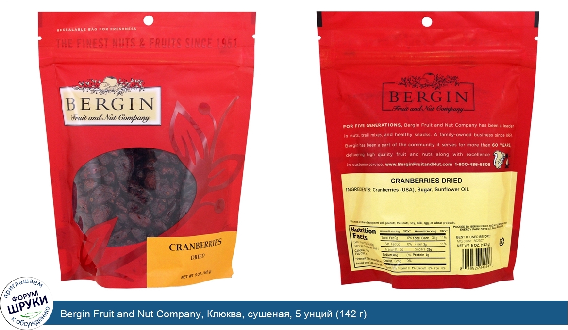 Друзья, если у вас есть отзыв/дополнение/комментарий/вопрос относительно Bergin Fruit and Nut Company, Клюква, сушеная, 5 унций (142 г) - напишите его ответом в эту тему (это будет полезно всему сообществу в целом и вам в отдельности).