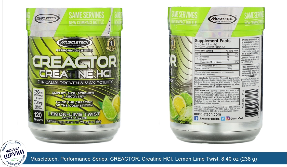 Друзья, если у вас есть отзыв/дополнение/комментарий/вопрос относительно Muscletech, Performance Series, CREACTOR, Creatine HCI, Lemon-Lime Twist, 8.40 oz (238 g) - напишите его ответом в эту тему (это будет полезно всему сообществу в целом и вам в отдельности).
