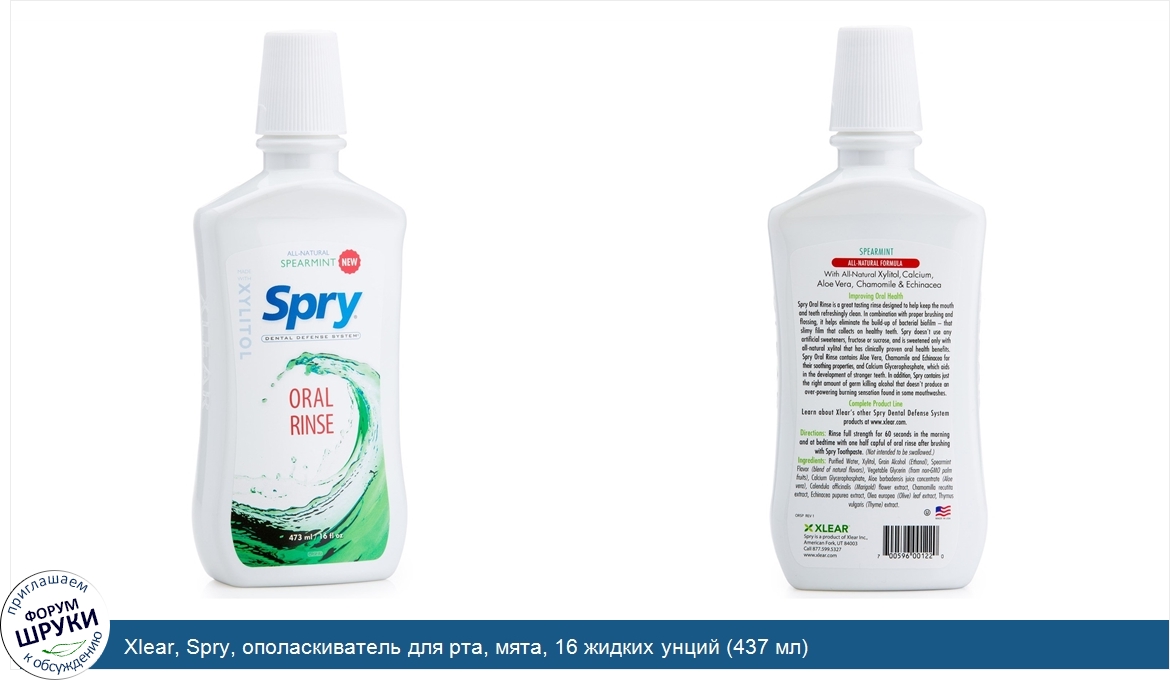 Друзья, если у вас есть отзыв/дополнение/комментарий/вопрос относительно Xlear, Spry, ополаскиватель для рта, мята, 16 жидких унций (437 мл) - напишите его ответом в эту тему (это будет полезно всему сообществу в целом и вам в отдельности).