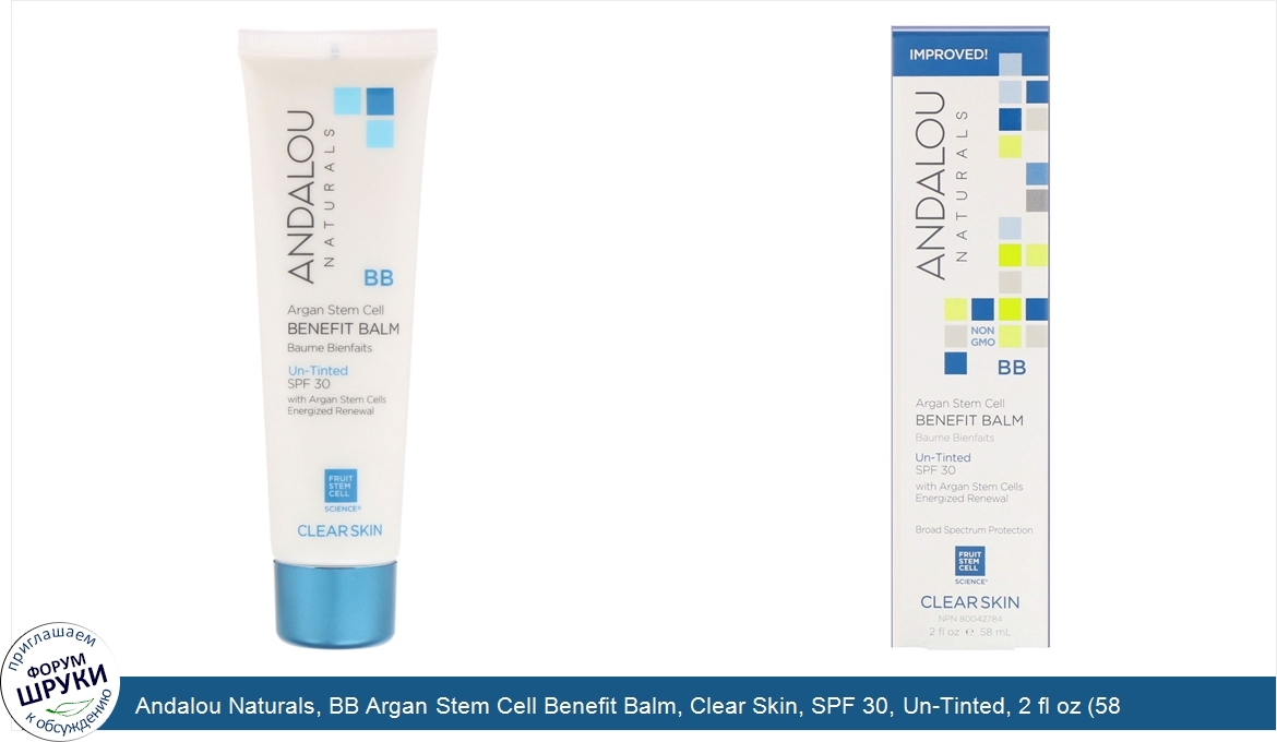Andalou Naturals, BB Argan Stem Cell Benefit Balm, Clear Skin, SPF 30, Un-Tinted, 2 fl oz (58 ml)