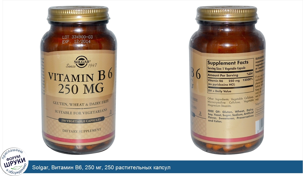 Друзья, если у вас есть отзыв/дополнение/комментарий/вопрос относительно Solgar, Витамин B6, 250 мг, 250 растительных капсул - напишите его ответом в эту тему (это будет полезно всему сообществу в целом и вам в отдельности).