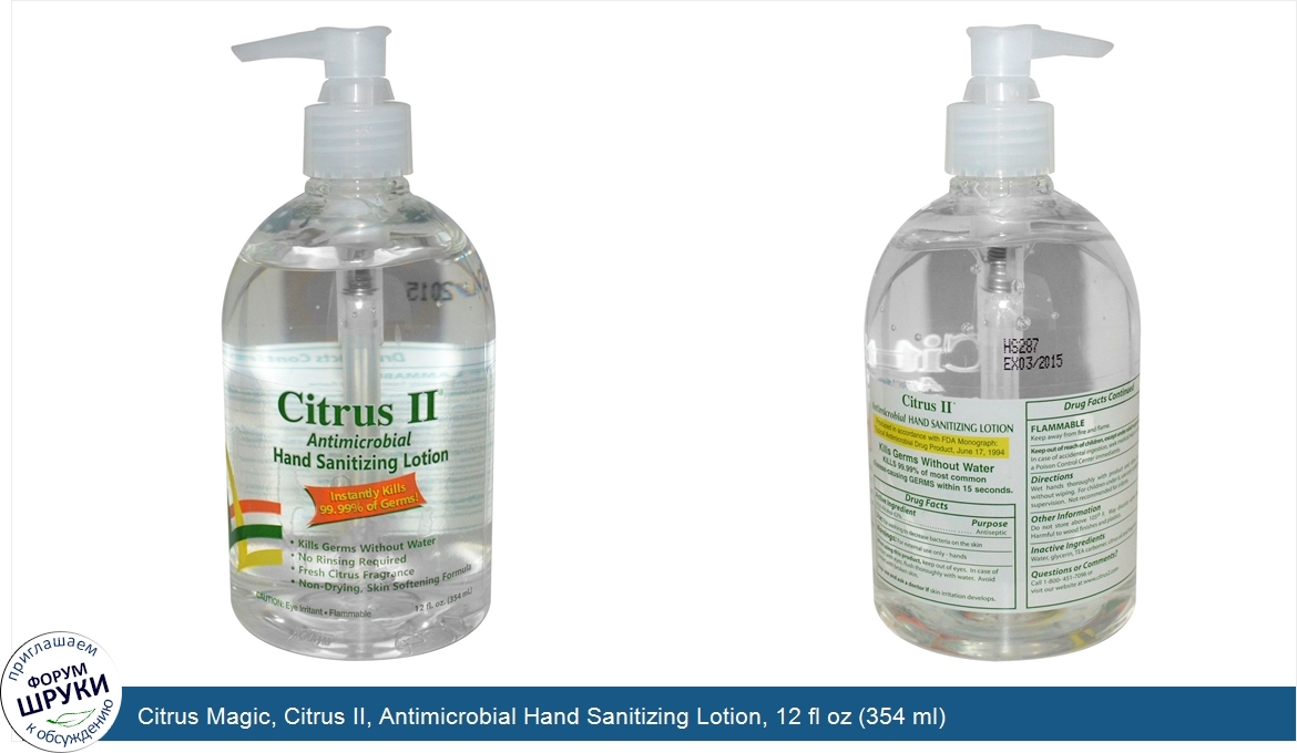 Друзья, если у вас есть отзыв/дополнение/комментарий/вопрос относительно Citrus Magic, Citrus II, Antimicrobial Hand Sanitizing Lotion, 12 fl oz (354 ml) - напишите его ответом в эту тему (это будет полезно всему сообществу в целом и вам в отдельности).