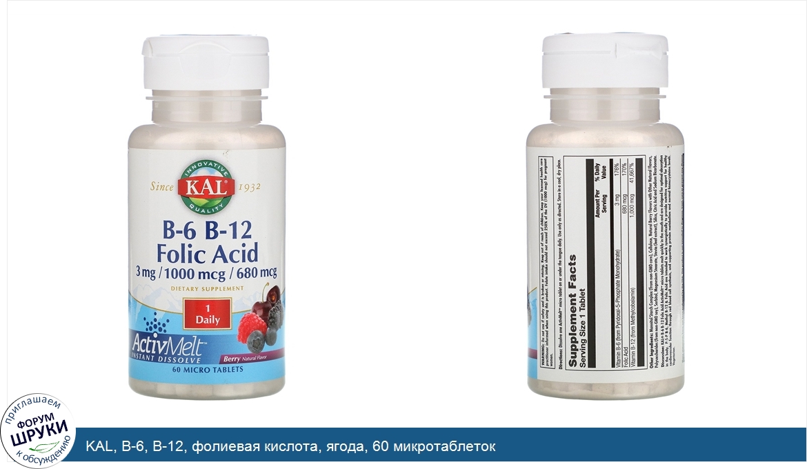 Друзья, если у вас есть отзыв/дополнение/комментарий/вопрос относительно KAL, B-6, B-12, фолиевая кислота, ягода, 60 микротаблеток - напишите его ответом в эту тему (это будет полезно всему сообществу в целом и вам в отдельности).