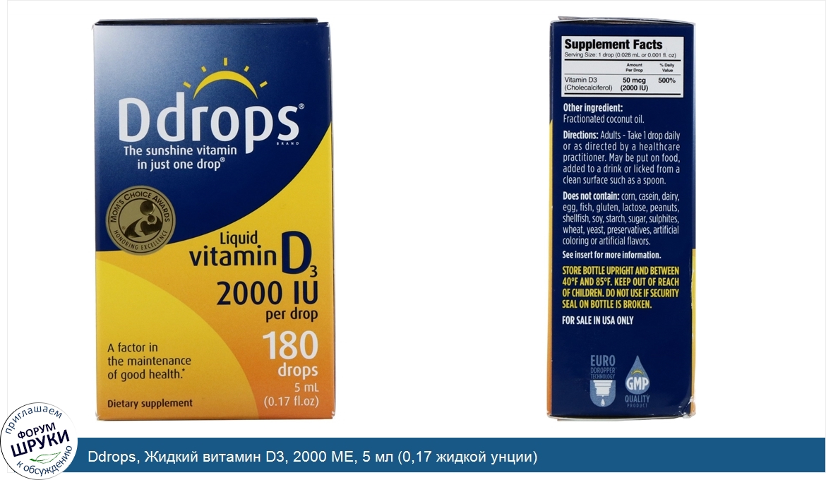 The Sunshine Vitamin in Just One Drop (Солнечный витамин в одной капле). Награда Mom's Choice Awards — Honoring Excellence. 2000 МЕ в капле. 180 капель. Фактор в поддержании хорошего здоровья. Пищевая добавка. Те...