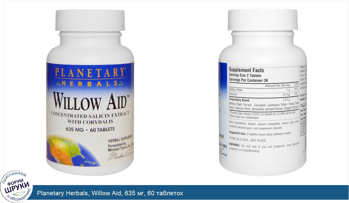 Planetary Herbals, Willow Aid, 635 мг, 60 таблеток