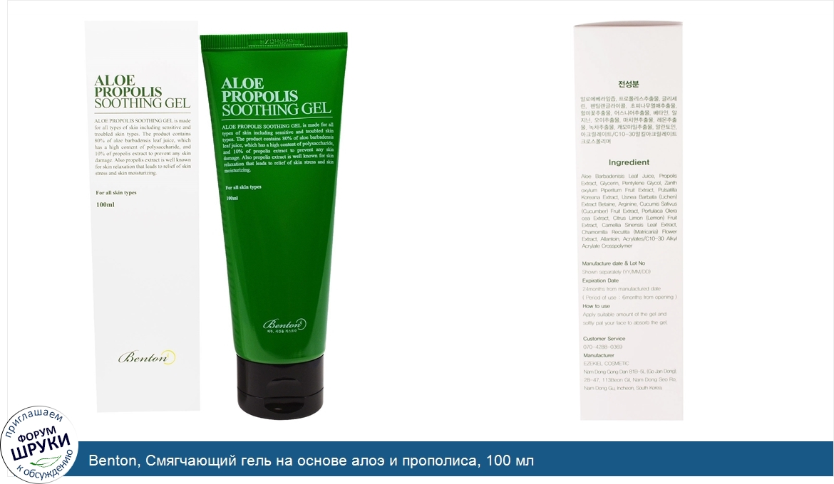 Друзья, если у вас есть отзыв/дополнение/комментарий/вопрос относительно Benton, Смягчающий гель на основе алоэ и прополиса, 100 мл - напишите его ответом в эту тему (это будет полезно всему сообществу в целом и вам в отдельности).