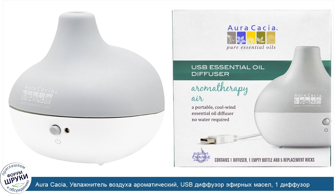 Aura Cacia, Увлажнитель воздуха ароматический, USB диффузор эфирных масел, 1 диффузор