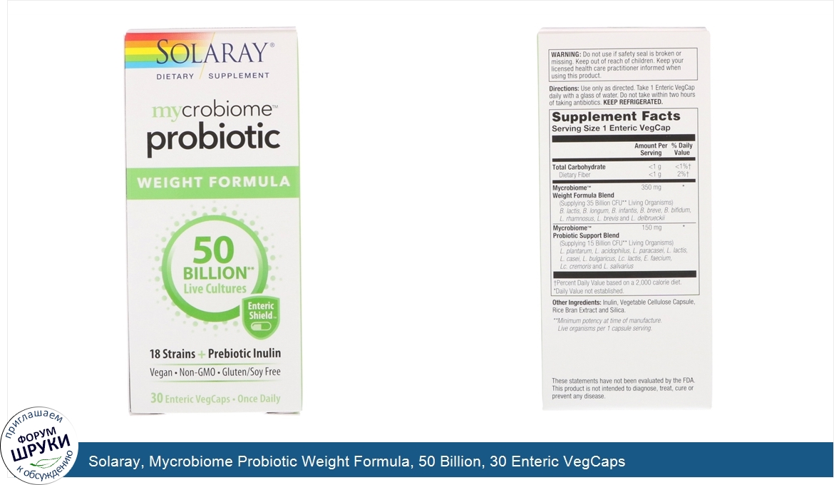 Друзья, если у вас есть отзыв/дополнение/комментарий/вопрос относительно Solaray, Mycrobiome Probiotic Weight Formula, 50 Billion, 30 Enteric VegCaps - напишите его ответом в эту тему (это будет полезно всему сообществу в целом и вам в отдельности).