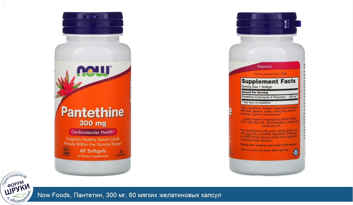 Друзья, если у вас есть отзыв/дополнение/комментарий/вопрос относительно Now Foods, Пантетин, 300 мг, 60 мягких желатиновых капсул - напишите его ответом в эту тему (это будет полезно всему сообществу в целом и вам в отдельности).