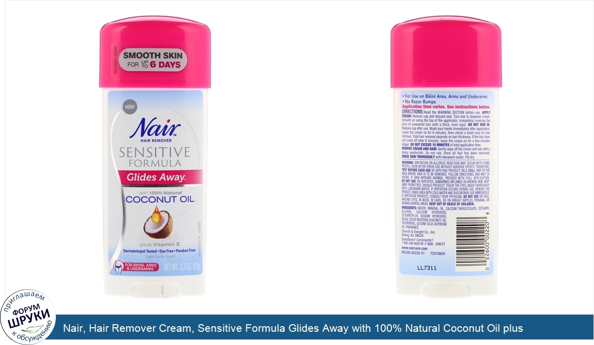 Друзья, если у вас есть отзыв/дополнение/комментарий/вопрос относительно Nair, Hair Remover Cream, Sensitive Formula Glides Away with 100% Natural Coconut Oil plus Vitamin E, Light Gentle Scent, 3.3 oz (93 g) - напишите его ответом в эту тему (это будет полезно всему сообществу в целом и вам в отдельности).