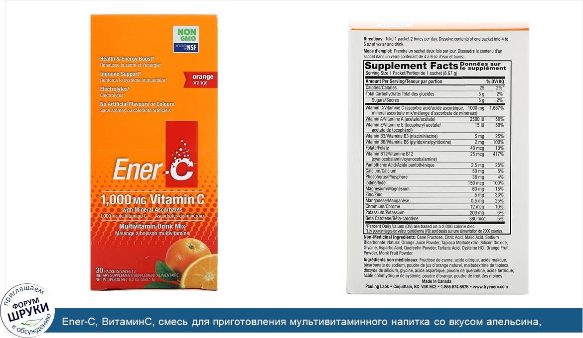 Друзья, если у вас есть отзыв/дополнение/комментарий/вопрос относительно Ener-C, ВитаминC, смесь для приготовления мультивитаминного напитка со вкусом апельсина, 30пакетиков, 260,1г (9,2унции) в каждом - напишите его ответом в эту тему (это будет полезно всему сообществу в целом и вам в отдельности).