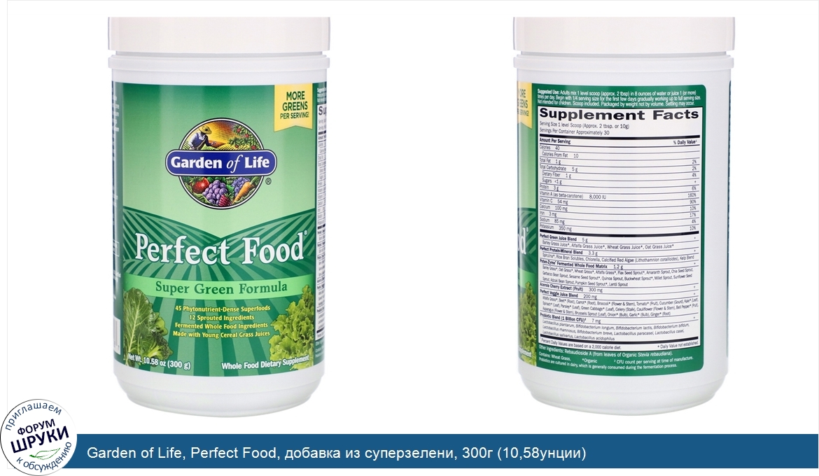 Друзья, если у вас есть отзыв/дополнение/комментарий/вопрос относительно Garden of Life, Perfect Food, добавка из суперзелени, 300г (10,58унции) - напишите его ответом в эту тему (это будет полезно всему сообществу в целом и вам в отдельности).
