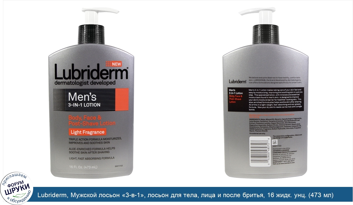 Друзья, если у вас есть отзыв/дополнение/комментарий/вопрос относительно Lubriderm, Мужской лосьон «3-в-1», лосьон для тела, лица и после бритья, 16 жидк. унц. (473 мл) - напишите его ответом в эту тему (это будет полезно всему сообществу в целом и вам в отдельности).