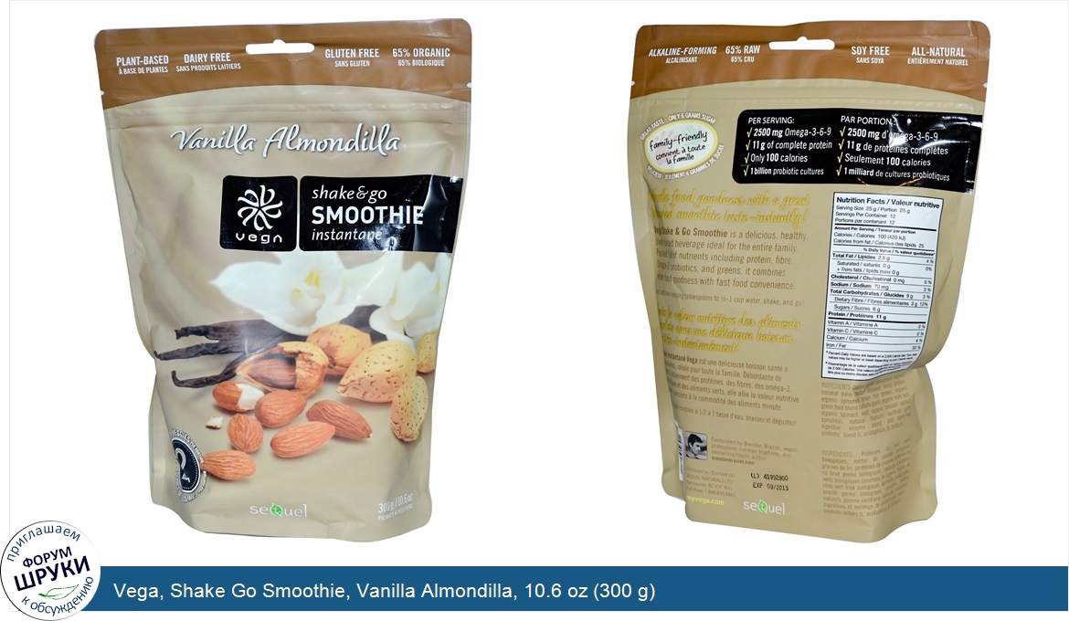 Друзья, если у вас есть отзыв/дополнение/комментарий/вопрос относительно Vega, Shake Go Smoothie, Vanilla Almondilla, 10.6 oz (300 g) - напишите его ответом в эту тему (это будет полезно всему сообществу в целом и вам в отдельности).