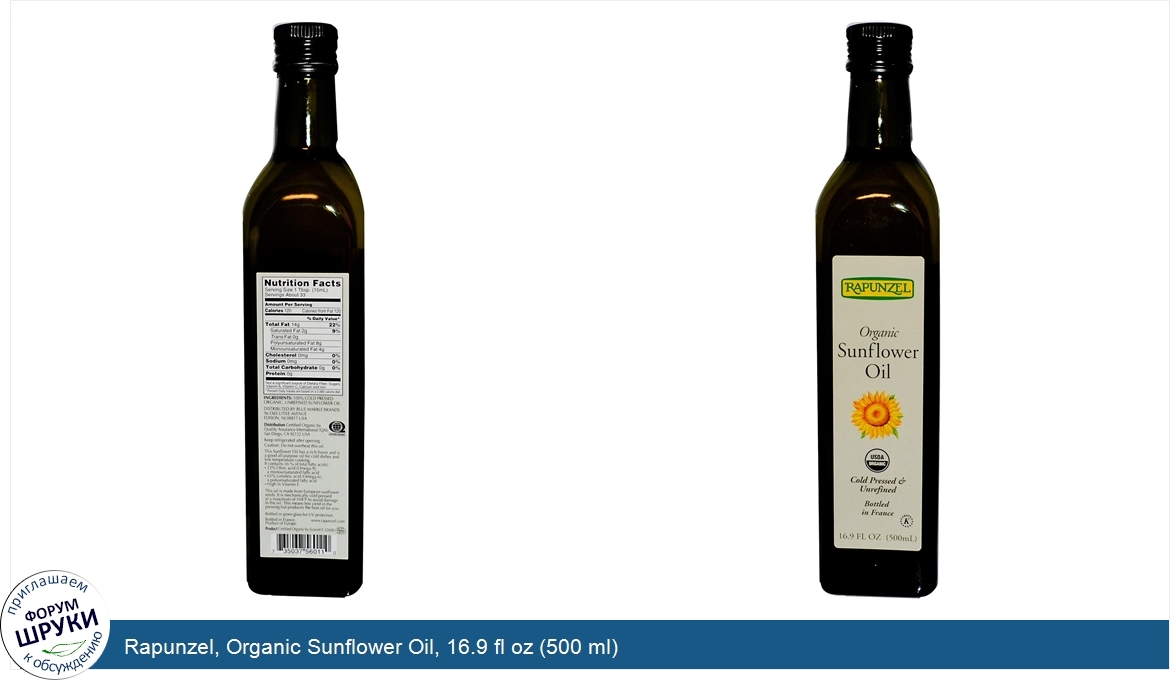 Друзья, если у вас есть отзыв/дополнение/комментарий/вопрос относительно Rapunzel, Organic Sunflower Oil, 16.9 fl oz (500 ml) - напишите его ответом в эту тему (это будет полезно всему сообществу в целом и вам в отдельности).