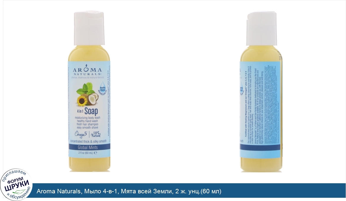 [DESCRIPT]Lifestyle, Wellness Natural Beauty. Healthy Choice - Magnesium Oil. Moisturizing Body Wash. Healthy Hand Wash. Fresh Hair Shampoo. Easy Smooth Shave. Omega 5 | 100% Natural. Concentrated Thick Silky Smooth. Leaping Bunny. Free of Parabens or Preservatives. Sulfate-Free. Free of Synthetic Colors. Fragrance Free. Free of Petroleum By-Products. Safe for Vegans. Non-GMO. Experience the Difference and Enjoy the Journey. This All-Natural Extraordinary Castile 4-in-1 Soap is now extra concentrated and uniquely thick. Fortified with Magnesium Oil plus Trace Minerals, and our Omega5 plus 3, 6, 7 9 with skin healthy Hi-EFA oils and Pure Essential Oils for a cleaner and more exhilarating experience. Handcrafted in sunny Southern California without any synthetic foaming agents, thickeners or preservatives. Magnesium Oil with 50+ Trace Minerals are now effectively diluted into our recipe to help promote healthy, smooth skin. Our old world manufacturing techniques retain the glycerin during the natural soap making process for added moisture. Fortified with Healing Magnesium and our Omega5 plus 3, 6, 7 9. Our concentrated natural Castile 4-in-1 Soap offers a deep cleansing for everybody. Enjoy it everyday as a complete body wash, hair and scalp deep cleanser, hand soap, and to provide a clean surface for smooth shaving. Aroma Naturals is a Father-and-Son family business dedicated to bringing you the finest Pure, Natural and Organic products available. All of our products are manufactured and packaged in our Southern California factory to always provide you with the best high-performing natural choices for your enjoyment, comfort, pleasure and well-being.[/DESCRIPT]... (описание дополняется)