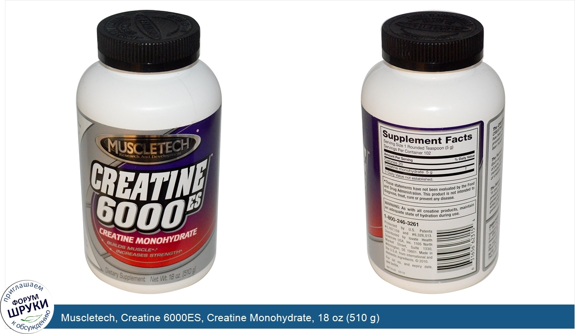 ru Muscletech, Creatine 6000ES, Creatine Monohydrate, 18 oz (510 g)