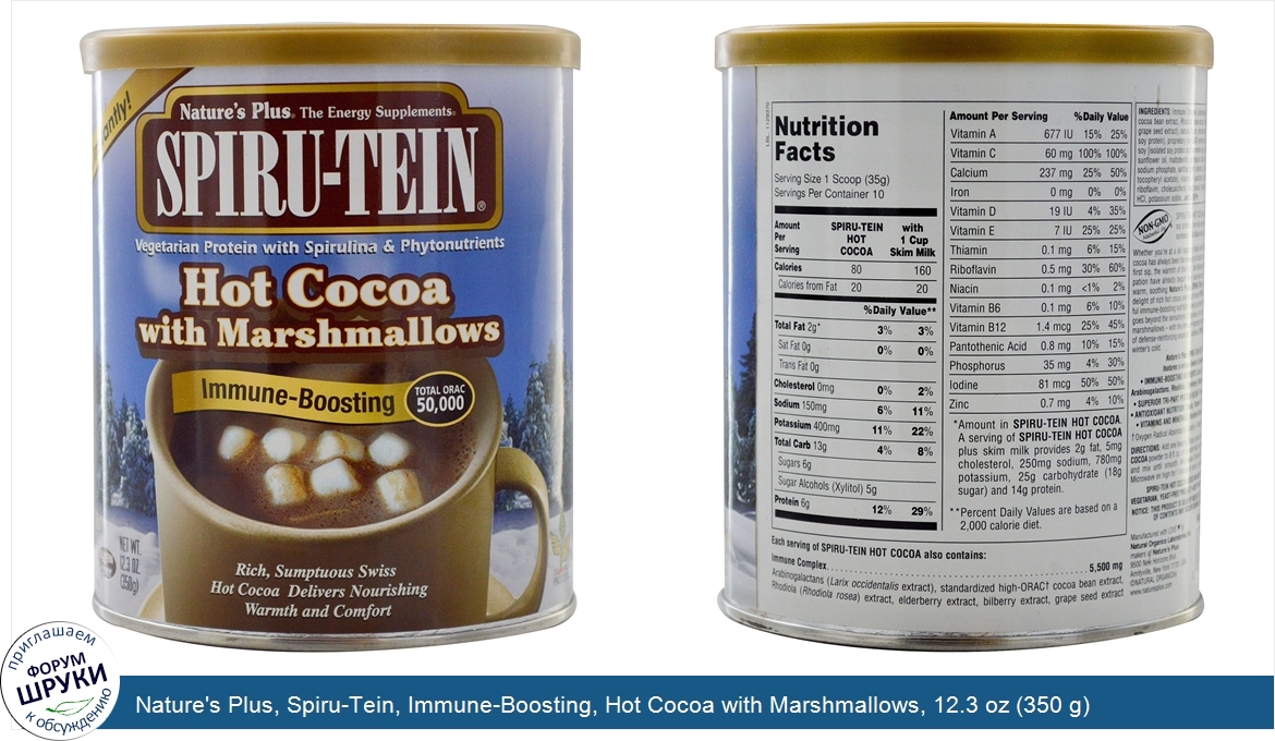 Друзья, если у вас есть отзыв/дополнение/комментарий/вопрос относительно Nature's Plus, Spiru-Tein, Immune-Boosting, Hot Cocoa with Marshmallows, 12.3 oz (350 g) - напишите его ответом в эту тему (это будет полезно всему сообществу в целом и вам в отдельности).