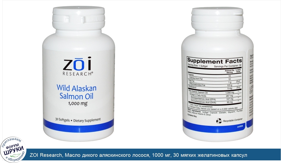 ru ZOI Research, Масло дикого аляскинского лосося, 1000 мг, 30 мягких желатиновых капсул