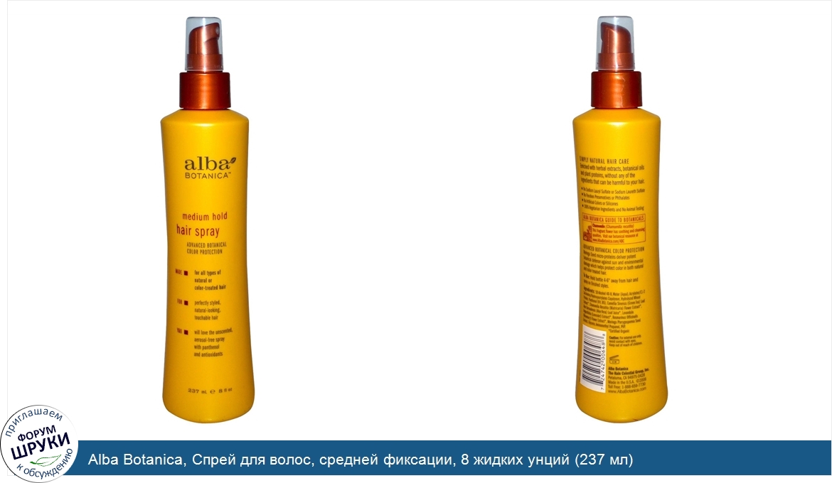 Alba Botanica, Спрей для волос, средней фиксации, 8 жидких унций (237 мл)