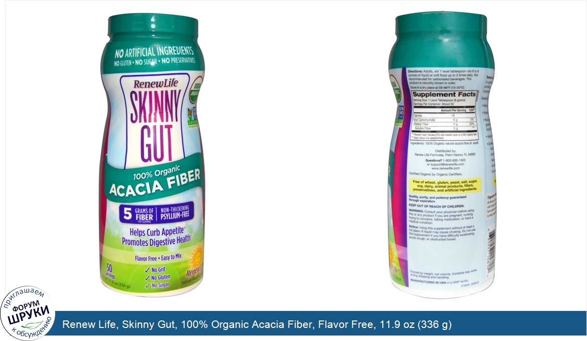 ru Renew Life, Skinny Gut, 100% Organic Acacia Fiber, Flavor Free, 11.9 oz (336 g)