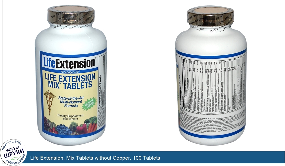 Друзья, если у вас есть отзыв/дополнение/комментарий/вопрос относительно Life Extension, Mix Tablets without Copper, 100 Tablets - напишите его ответом в эту тему (это будет полезно всему сообществу в целом и вам в отдельности).