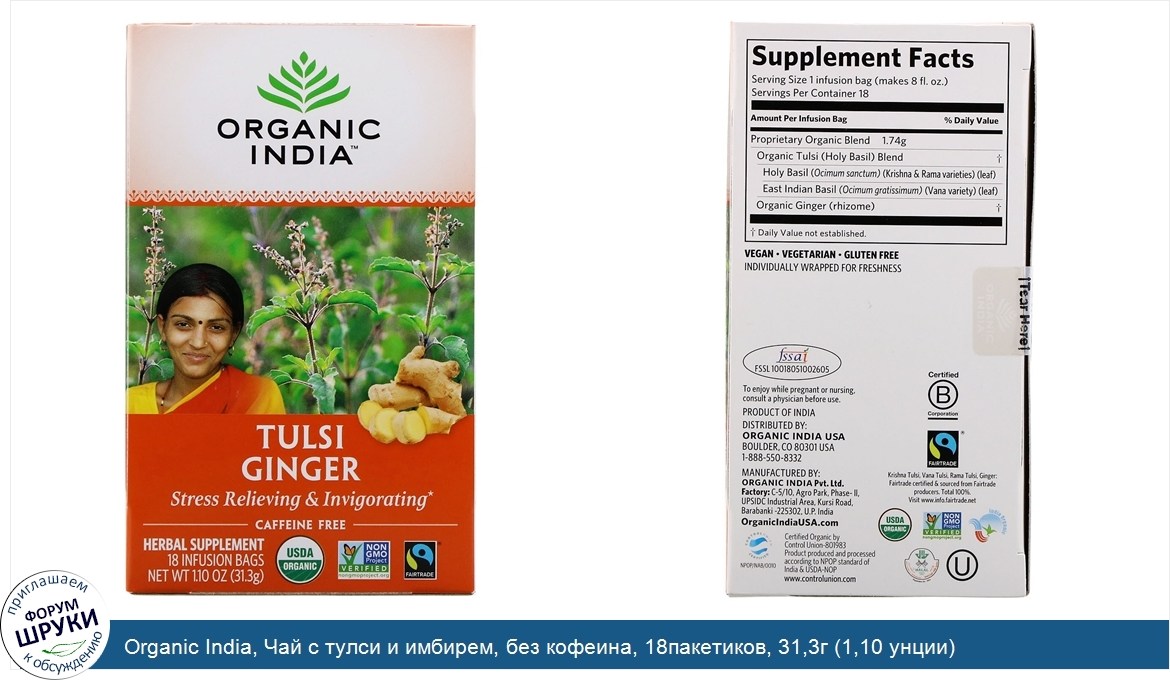 Друзья, если у вас есть отзыв/дополнение/комментарий/вопрос относительно Organic India, Чай с тулси и имбирем, без кофеина, 18пакетиков, 31,3г (1,10 унции) - напишите его ответом в эту тему (это будет полезно всему сообществу в целом и вам в отдельности).