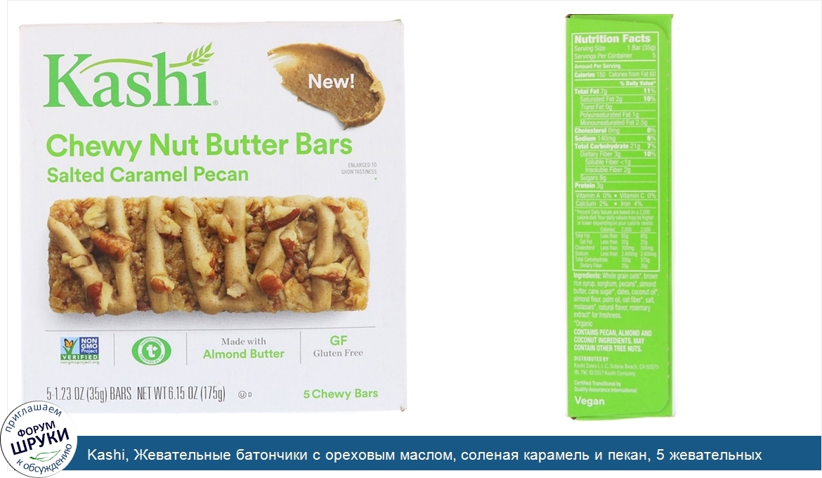 Друзья, если у вас есть отзыв/дополнение/комментарий/вопрос относительно Kashi, Жевательные батончики с ореховым маслом, соленая карамель и пекан, 5 жевательных баточников, по 35 г каждый - напишите его ответом в эту тему (это будет полезно всему сообществу в целом и вам в отдельности).