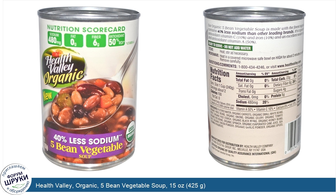 Друзья, если у вас есть отзыв/дополнение/комментарий/вопрос относительно Health Valley, Organic, 5 Bean Vegetable Soup, 15 oz (425 g) - напишите его ответом в эту тему (это будет полезно всему сообществу в целом и вам в отдельности).