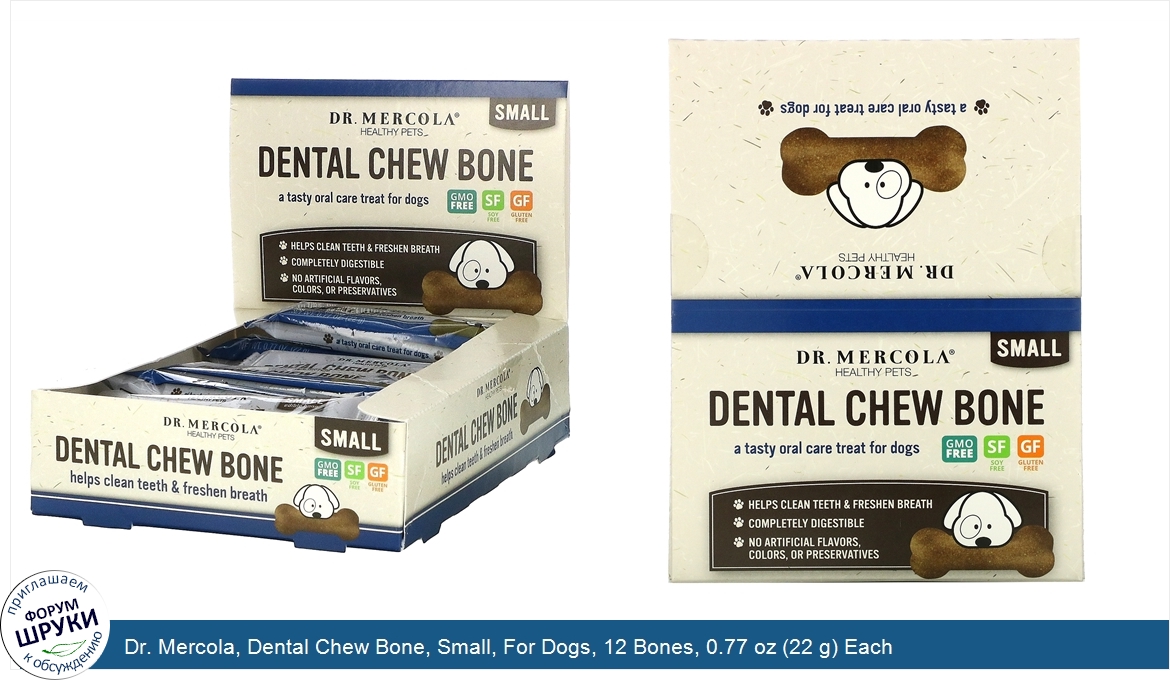 Dr. Mercola, Dental Chew Bone, Small, For Dogs, 12 Bones, 0.77 oz (22 g) Each