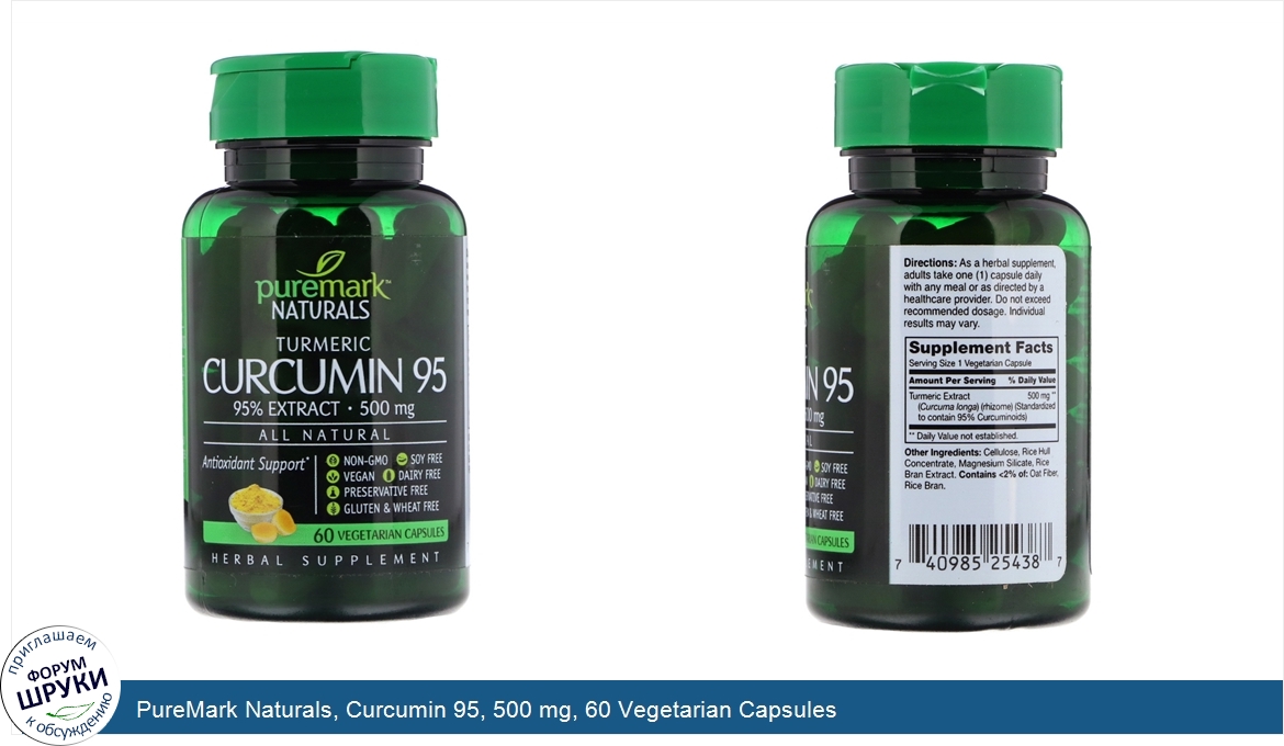 PureMark Naturals, Curcumin 95, 500 mg, 60 Vegetarian Capsules