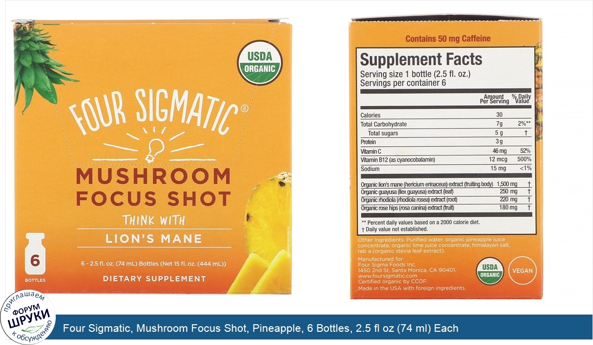 Друзья, если у вас есть отзыв/дополнение/комментарий/вопрос относительно Four Sigmatic, Mushroom Focus Shot, Pineapple, 6 Bottles, 2.5 fl oz (74 ml) Each - напишите его ответом в эту тему (это будет полезно всему сообществу в целом и вам в отдельности).