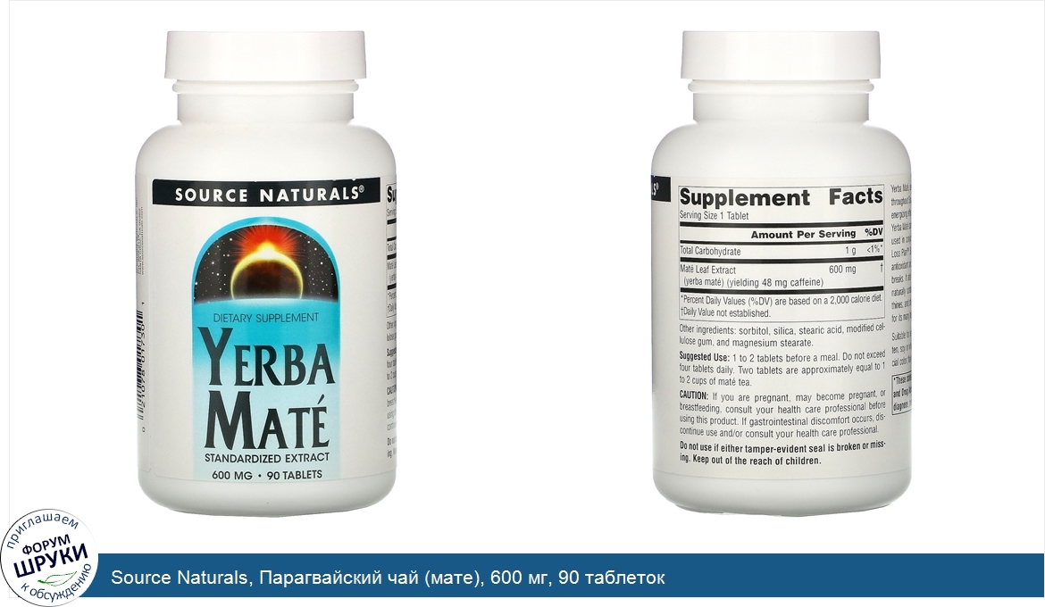 Друзья, если у вас есть отзыв/дополнение/комментарий/вопрос относительно Source Naturals, Парагвайский чай (мате), 600 мг, 90 таблеток - напишите его ответом в эту тему (это будет полезно всему сообществу в целом и вам в отдельности).