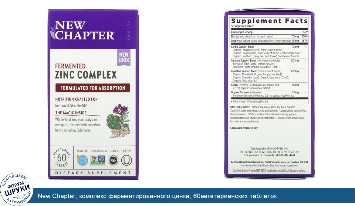 Друзья, если у вас есть отзыв/дополнение/комментарий/вопрос относительно New Chapter, комплекс ферментированного цинка, 60вегетарианских таблеток - напишите его ответом в эту тему (это будет полезно всему сообществу в целом и вам в отдельности).
