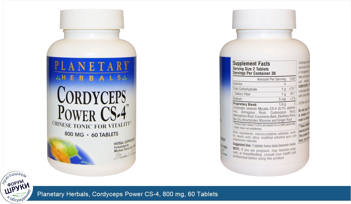 [DESCRIPT]. Herbal Supplement. Formulated by Michael Tierra L.Ac, O.M.D. Cordyceps sinensis is one of the most valued tonics of Chinese herbalism. In China, it is recognized as a premier tonifier for athletes and anyone wanting to support energy and endurance. Planetary Herbals Cordyceps Power CS-4 combines cordyceps (standardized to 0.1% adenosine) with other tonifiers from around the world.[/DESCRIPT]... (описание дополняется)