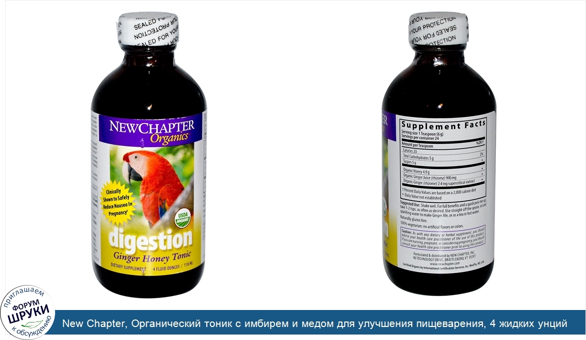 Друзья, если у вас есть отзыв/дополнение/комментарий/вопрос относительно New Chapter, Органический тоник с имбирем и медом для улучшения пищеварения, 4 жидких унций (118 мл) - напишите его ответом в эту тему (это будет полезно всему сообществу в целом и вам в отдельности).