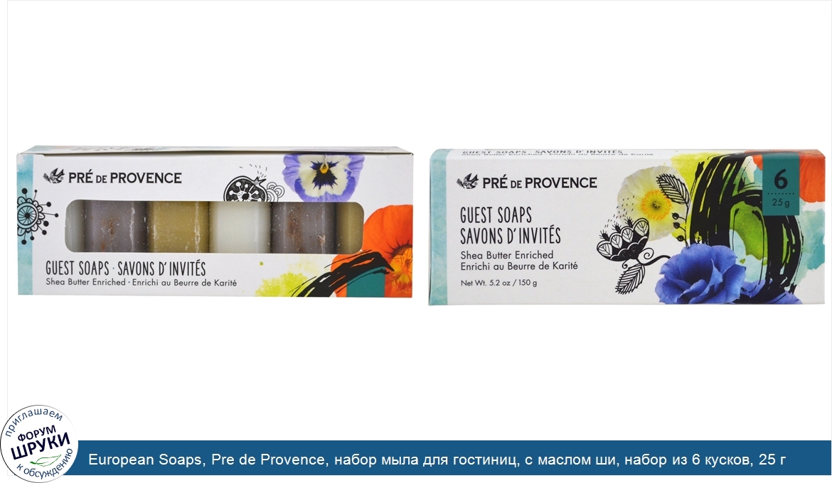 Друзья, если у вас есть отзыв/дополнение/комментарий/вопрос относительно European Soaps, Pre de Provence, набор мыла для гостиниц, с маслом ши, набор из 6 кусков, 25 г - напишите его ответом в эту тему (это будет полезно всему сообществу в целом и вам в отдельности).