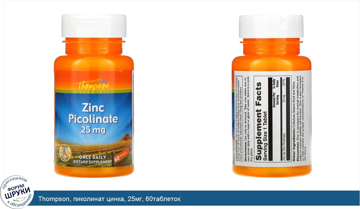 Друзья, если у вас есть отзыв/дополнение/комментарий/вопрос относительно Thompson, пиколинат цинка, 25мг, 60таблеток - напишите его ответом в эту тему (это будет полезно всему сообществу в целом и вам в отдельности).