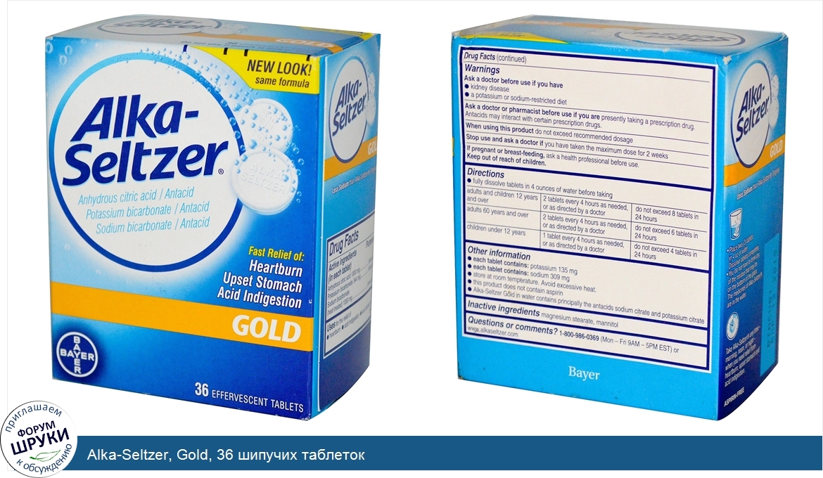 Друзья, если у вас есть отзыв/дополнение/комментарий/вопрос относительно Alka-Seltzer, Gold, 36 шипучих таблеток - напишите его ответом в эту тему (это будет полезно всему сообществу в целом и вам в отдельности).