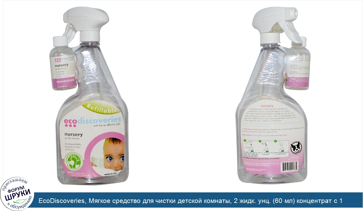 Друзья, если у вас есть отзыв/дополнение/комментарий/вопрос относительно EcoDiscoveries, Мягкое средство для чистки детской комнаты, 2 жидк. унц. (60 мл) концентрат с 1 флаконом-распылителем - напишите его ответом в эту тему (это будет полезно всему сообществу в целом и вам в отдельности).
