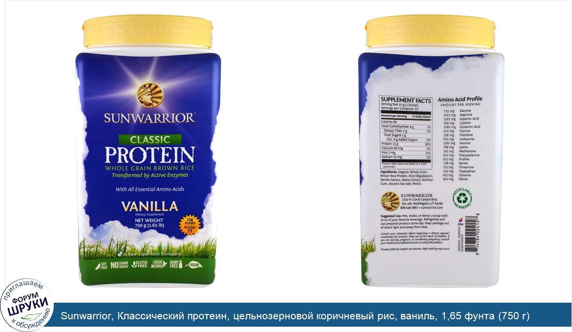 Друзья, если у вас есть отзыв/дополнение/комментарий/вопрос относительно Sunwarrior, Классический протеин, цельнозерновой коричневый рис, ваниль, 1,65 фунта (750 г) - напишите его ответом в эту тему (это будет полезно всему сообществу в целом и вам в отдельности).