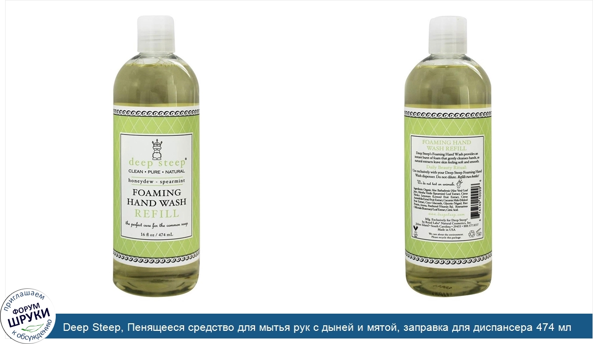 ru Deep Steep, Пенящееся средство для мытья рук с дыней и мятой, заправка для диспансера 474 мл
