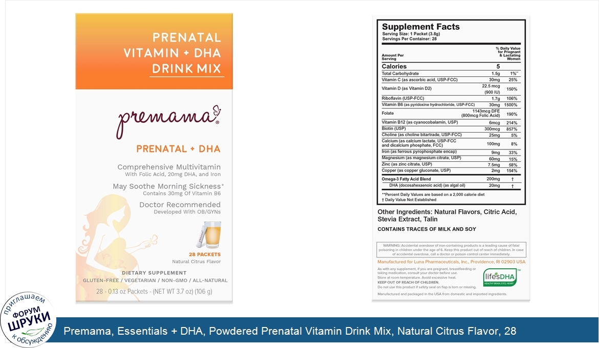 Друзья, если у вас есть отзыв/дополнение/комментарий/вопрос относительно Premama, Essentials + DHA, Powdered Prenatal Vitamin Drink Mix, Natural Citrus Flavor, 28 Packets, 3.8 g each - напишите его ответом в эту тему (это будет полезно всему сообществу в целом и вам в отдельности).