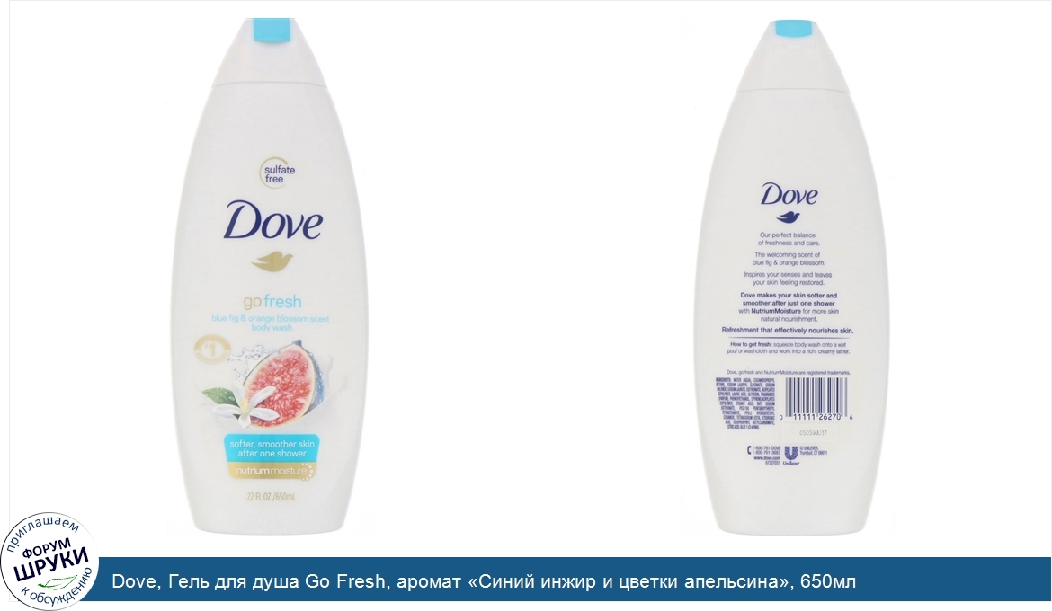 Друзья, если у вас есть отзыв/дополнение/комментарий/вопрос относительно Dove, Гель для душа Go Fresh, аромат «Синий инжир и цветки апельсина», 650мл - напишите его ответом в эту тему (это будет полезно всему сообществу в целом и вам в отдельности).