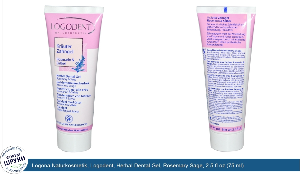 Logona Naturkosmetik, Logodent, Herbal Dental Gel, Rosemary Sage, 2.5 fl oz (75 ml)