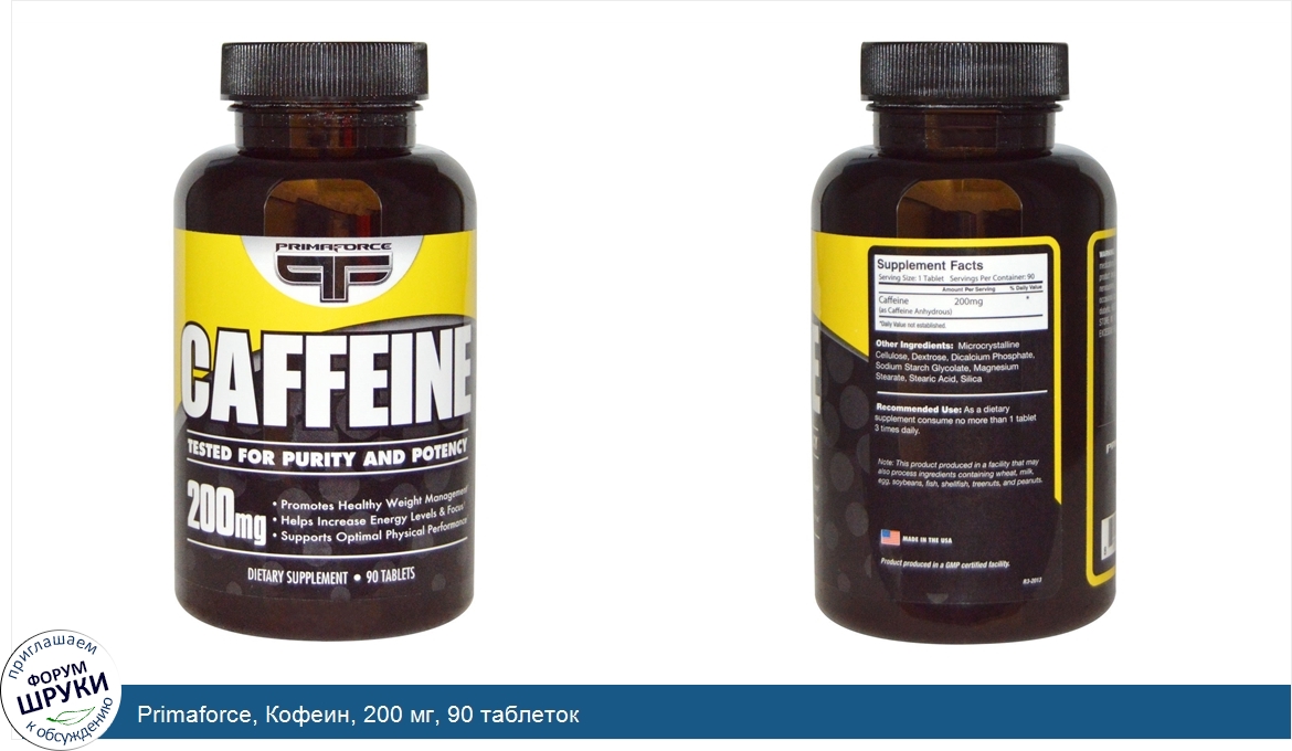 Primaforce, Кофеин, 200 мг, 90 таблеток