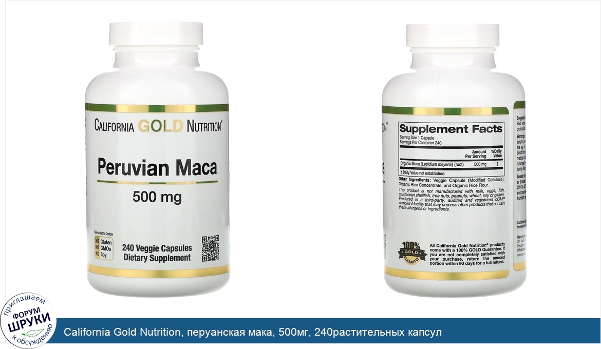 California Gold Nutrition, перуанская мака, 500мг, 240растительных капсул